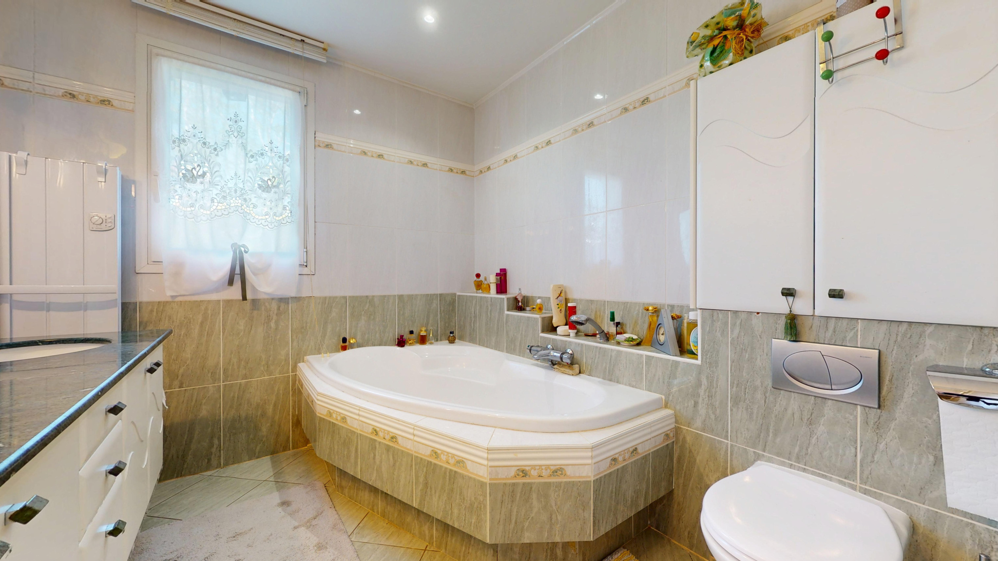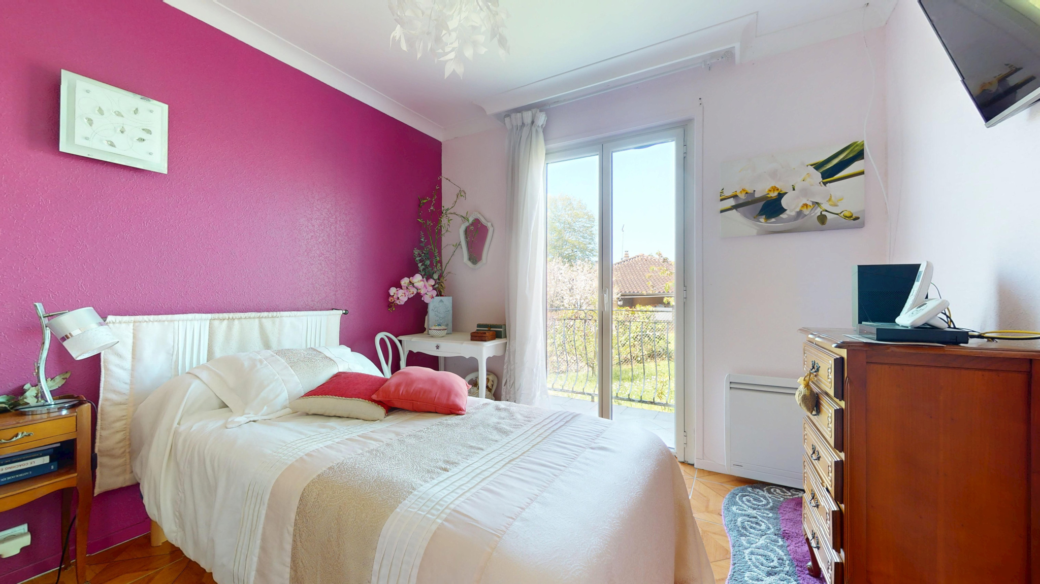 La partie nuit compte 3 chambres dont une avec dressing et une salle de bains avec wc.
