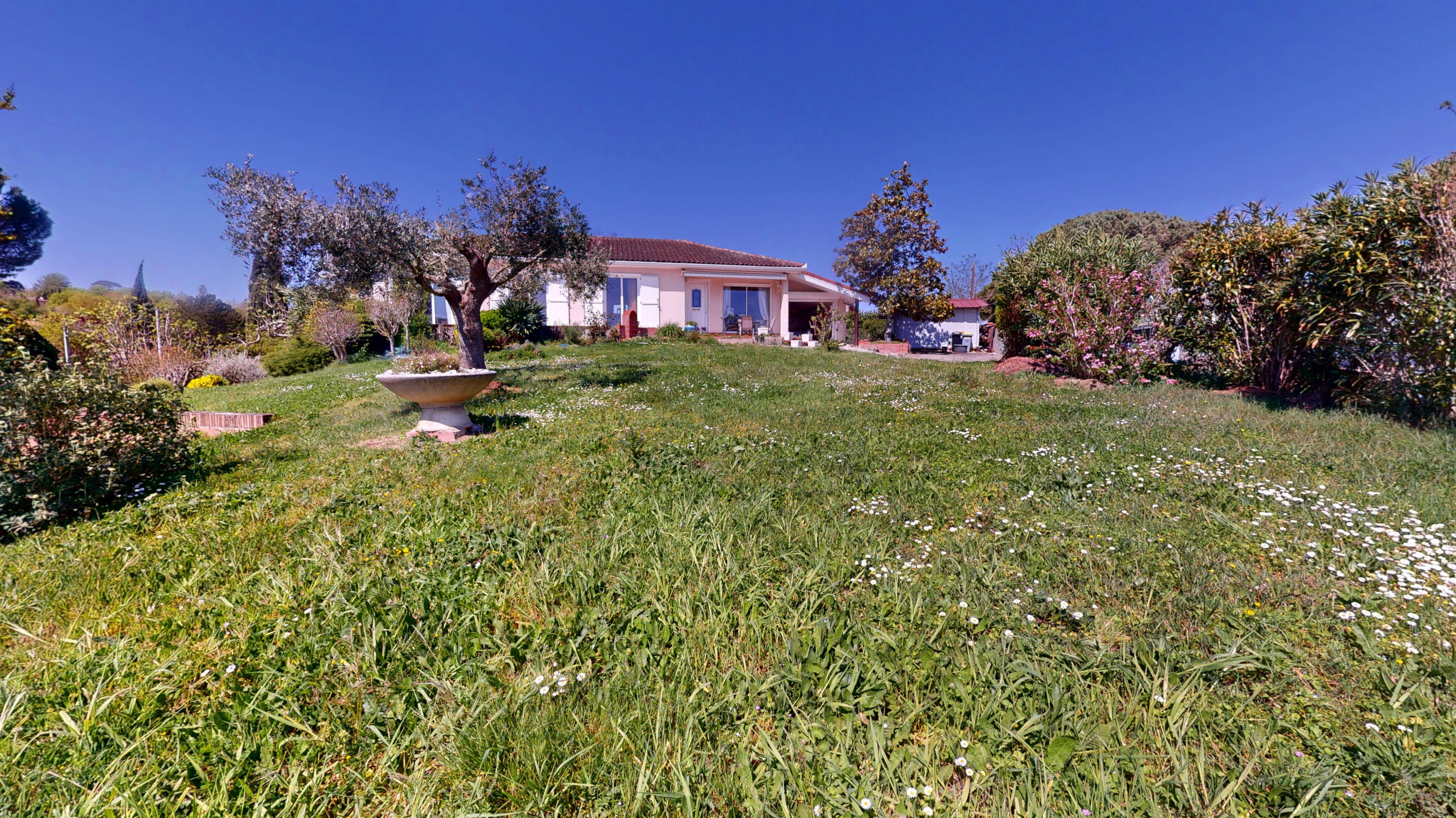 Elle est complétée par un cabanon, 2 terrasses et un garage.