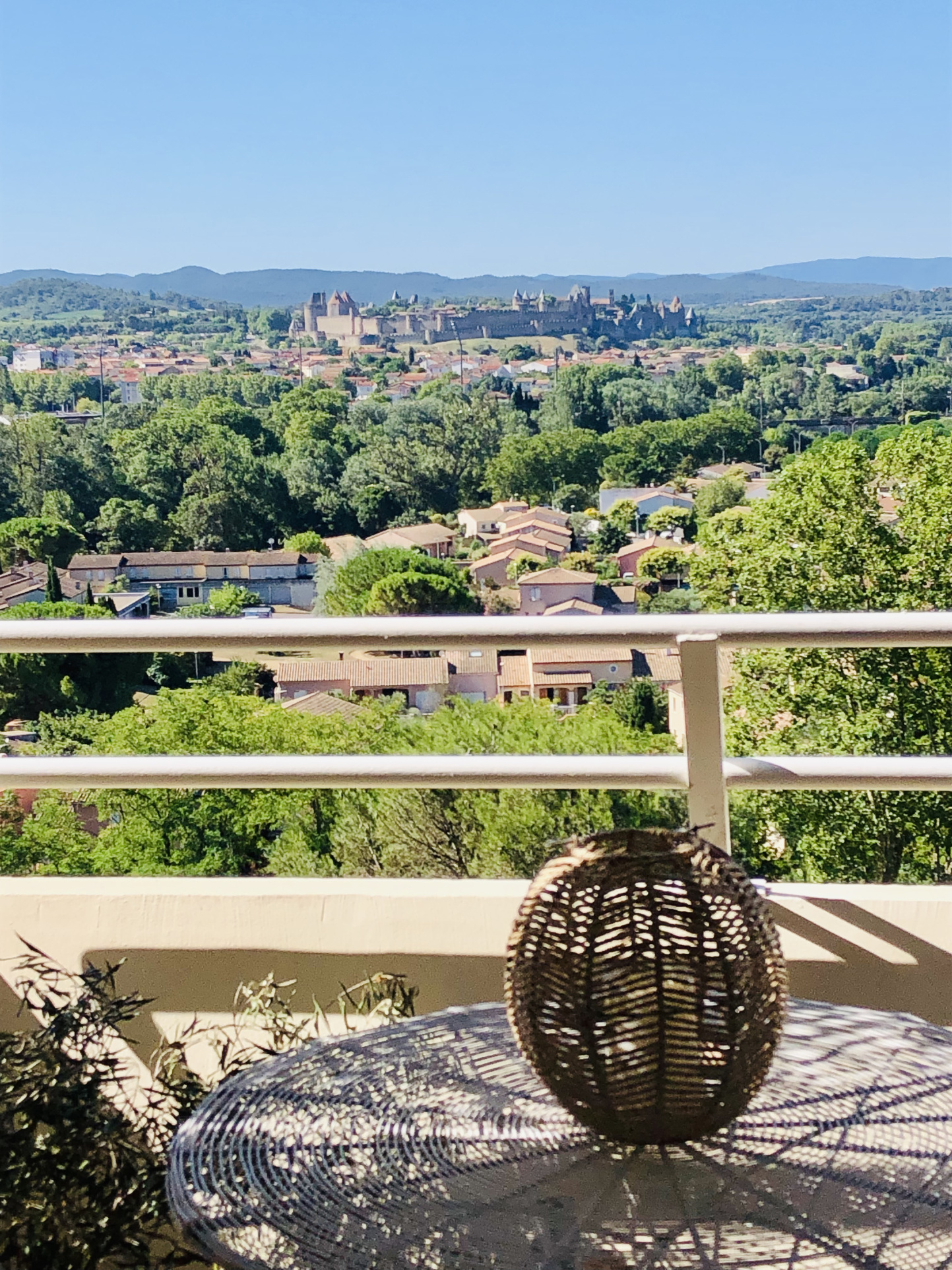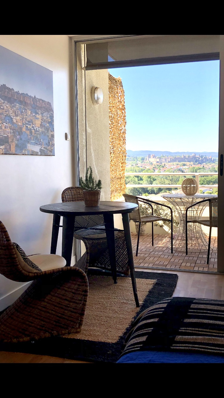 Situé sur les hauteurs de Carcassonne, dans le quartier de Grazaille, cet appartement rare bénéficie d'un panorama spectaculaire sur la Cité médiévale, le Canal du Midi et la chaîne des Pyrénées.